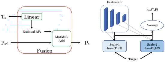 Here, different projection weights are employed for each scale, and the output is averaged across all scales. While conceptually simple, this equation effectively incorporates multi-scale image features into the attention calculation. This approach differs significantly from methods that rely solely on single-scale low-resolution features and is also well-suited for lightweight model design. These concepts are visually explained in Figure 4, where the fusion process in the dual transformer and the integration of multi-scale features are illustrated, offering a comparison with conventional single-scale approaches.