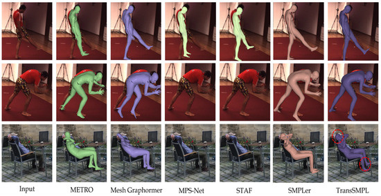 To further assess the performance of TransSMPL, we conduct a qualitative analysis by comparing it with SMPLer on several sample images from the 3DPW dataset, as illustrated in Figure 6.
