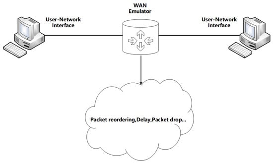 - Kalitay, H.K.; Nambiarz, M.K. Designing WANem: A Wide Area Network emulator tool. In Proceedings of the 2011 Third International Conference on Communication Systems and Networks (COMSNETS 2011), Bangalore, India, 4–8 January 2011; pp. 1–4. [Google Scholar]