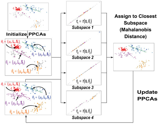 - Tipping, M.E.; Bishop, C.M. Mixtures of probabilistic principal component analyzers. Neural Comput. 1999, 11, 443–482. [Google Scholar] [CrossRef]