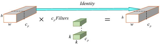 The formula for calculating FLOPs for local convolutions is shown in Equation (11). The ratio of the number of channels in local convolution to traditional convolution is 1/4, so the number of floating-point operations per second for local convolution is only 1/16 of that of traditional convolution. Here, and represent the height and width of the input, respectively, represent the number of channels, the convolution kernel size is × , and the number of convolution kernels is also . “Identity” [] represents the identity mapping.