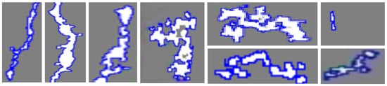 Some cracks may not be significant, and after threshold segmentation, the crack regions might become disconnected. These disconnected regions, when analyzed independently, may not meet the characteristics of cracks and could be mistakenly excluded. Therefore, this paper further analyzes the suspected crack regions through continuity analysis, as shown in Figure 11.