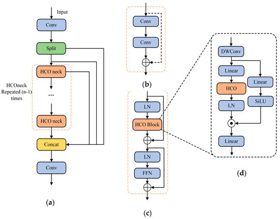 The structure of the HTCF, bottleneck, HCOneck, and HCOneck. (a) HTCF; (b) bottleneck; (c) HCOneck; (d) HCOblock.