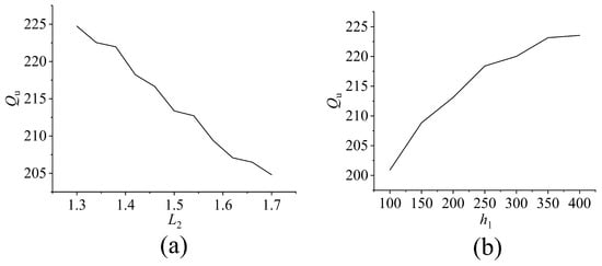 The connection between the quality factor and capacitor parameters of CL-QMSIW resonators. (a) The correlation between the unloaded quality factor and the width () of the capacitor patch. (b) The correlation between the unloaded quality factor and the distance () from the capacitor patch to the top metal layer.