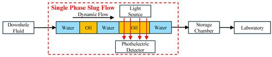 During the MWD process, downhole fluids usually form slug flow as shown in Figure 10, where water alternates with oil flowing in a tube. The crude oil contamination rate is computed by
