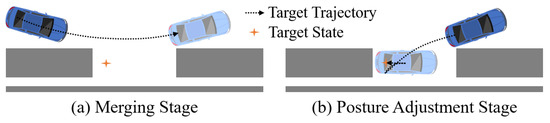 Illustration of (a) merging stage and (b) posture adjustment stage for a pull-in process.