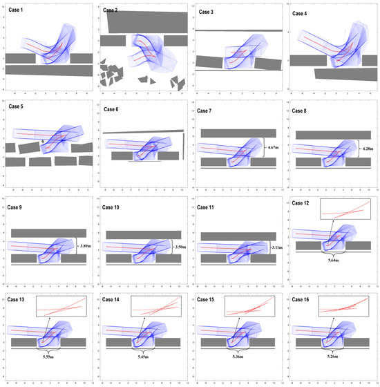 To further analyze the robustness of the proposed trajectory planning method, we conducted two additional experiments. First, a random experiment was performed for parking Case 16, involving 200 Monte Carlo trials. The initial conditions of the vehicle were varied, with the random initialization data summarized in Table 7. In the second experiment, 20 scenarios were generated based on Case 6 by randomly adding obstacles. The parameters of these random obstacles are detailed in Table 8.