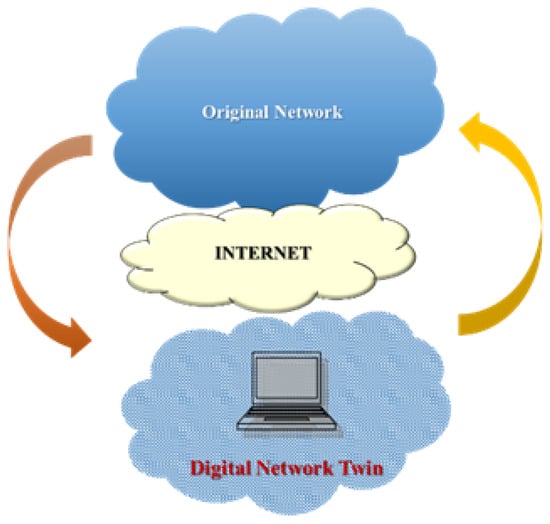 In the ever-evolving world of technology, network protocols play a critical role in facilitating communication among devices and networks. These protocols, which consist of sets of rules and conventions, enable devices to communicate effectively, regardless of differences in hardware, software, or network infrastructures. The Telnet protocol, for example, is a point-to-point, client/server, and simple terminal protocol that allows users to log into a computer across the Internet. Telnet is still utilized in some local private environments where security is not a concern. To mitigate these security risks, the Secure Shell (SSH) protocol was developed. SSH, also a point-to-point and client/server protocol, is widely used for remote access to systems, especially in environments where security is paramount, such as servers, networking devices, and cloud infrastructure []. Following the SSH protocol, in order to enhance productivity by extending business corporate networks and applications, providing flexibility and security, and reducing communication costs, a Virtual Private Network (VPN) is used by applying a tunnel created between the VPN–client and VPN–server over a public network []. Despite the advancements in communication methods, the existing communication methods have several drawbacks, including low synchronization, limited compatibility, integration concerns, and low privacy. Therefore, this paper explores a solution to these issues, particularly in light of the advent of network virtualization models as a promising approach to address the ossification problem on the Internet []. Additionally, the innovative concept of digital twin (DT) has been applied in several fields like manufacturing, industrial applications, and healthcare. DT, as a transformative approach, enables the modeling and simulation of real assets and systems within a digital environment to improve operational efficiency and reduce failure rates []. The novel architecture proposed in this paper is based on a virtual network twin (VNT) framework, as shown in Figure 1, and aims to provide users with a seamless connection experience as if they were directly connected to the original network. The primary focus of this research is the creation of a digital twin network (DTN) through virtualization, where the digital network acts as a virtualized replica of the original. The virtual network twin architecture leverages the DTN concept as a digital representation of a live physical network, utilizing network virtualization. The VNT framework can play a significant role in several key areas, such as the healthcare industry by improving medical applications, in the field of autonomous, in remote driving by improving communication with vehicles, and in deep-space communication systems [].
