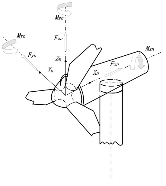 As shown in Figure 2, during operation, the horizontal force on the main shaft mainly results from the overturning force and centrifugal force from the blades, as well as the braking force applied to the main shaft during the activation of the mechanical brake system. The radial force on the main shaft primarily comes from the gravitational forces acting on the main shaft, gearbox, and other components. Therefore, during the operation of the wind turbine main shaft, in addition to axial displacement, radial displacement also occurs [24]. These two types of displacement can impact the stability of the main shaft and the overall performance of the wind turbine.