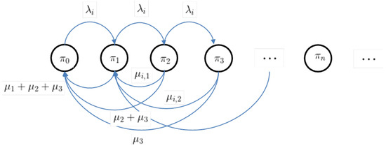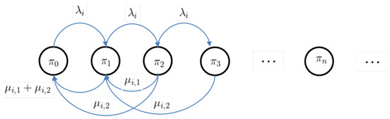 The state transition diagram is shown in Figure 2. The balance equation for is as follows: