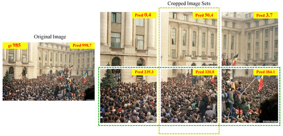 where stands for the subrectangle regions with the following downsampling rate r. The is the part estimated counts of the j-th subrectangle areas () in the i-th images. is the first randomly selected region in the input image.