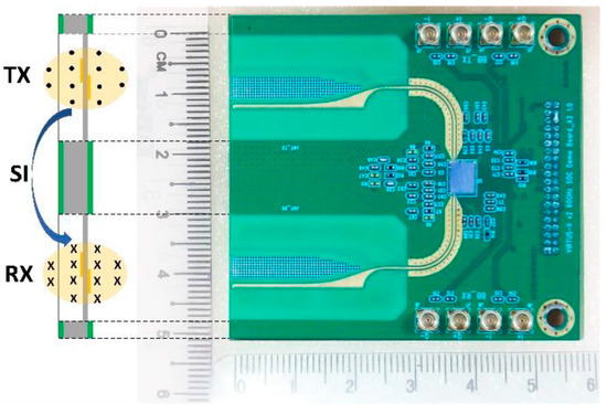 The FD operation is another way to deliver a high data rate by doubling the system’s achievable spectrum efficiency [5,6]. Moreover, the ultra-low latency demand for the upcoming wireless communication system [7] is another benefit for the FD system. With optical communication-like propagation characteristics and a narrow beamwidth, the FD system is a good candidate for a 60 GHz transceiver to work in FD mode. However, the FD system suffers from an enormous RF signal power difference between the power imposed by its transmission and that received from the remote transmitter.