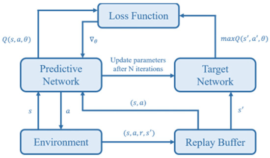 In the above equation, represents the approximate Q-value with the parameter of the DNN, which needs to be precisely adjusted during the raining procedure.
