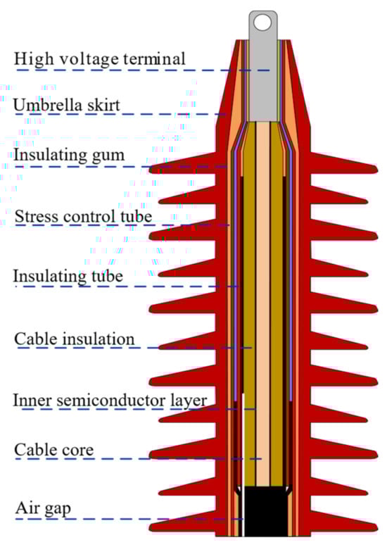 - Xin, D.; Wu, G.; Chen, K.; Liu, K.; Xie, Y.; Gao, G.; Xiao, S.; Tang, Y.; Sun, C.; Lin, M. Research on the evolution characteristics of interfacial defect inside the vehicle-mounted high-voltage cable termination for high-speed trains. CSEE J. Power Energy Syst. 2023. [Google Scholar] [CrossRef]