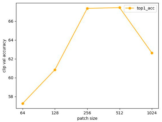 The feature generated by the feature extractor in the spatial domain serves as one of the patches in our spatiotemporal features. We tested the impact of different patch sizes on SCSM with a ResNet-50 backbone. A larger patch size generated by the image feature extractor indicates that more features can be represented in the image. According to our test results, shown in Figure 6, we found that a patch size of 512 achieved the highest accuracy, while a patch size of 256 showed a slight decrease. Patch sizes below 256 dropped significantly in validation accuracy, indicating an ineffective representation of image features. In the case of a patch size of 1024, we believe that in the same training time, it was insufficient to adequately train the model. Therefore, we selected a patch size of 512 for our experiments.
