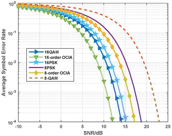 Average symbol error rate comparison of proposed OCIA, QAM and PSK.