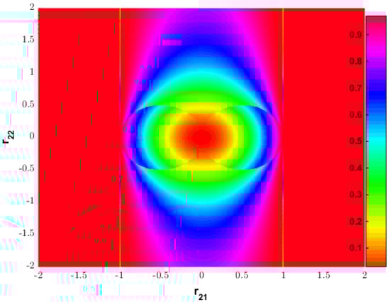 - . Under this condition, we can have that . Then, . By computations, we can verify that is monotonically increasing with respect to over and monotonically decreasing with respect to over . Then, our discussions fall into the following two subcases: