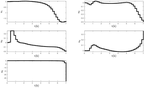 Control inputs with the proposed discrete-time adaptive control method given in Section 3.