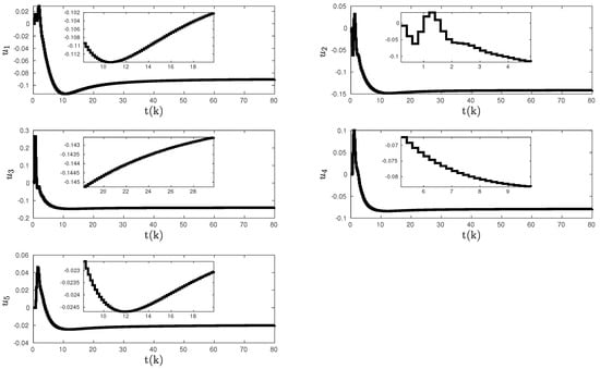 Control inputs with the proposed discrete-time adaptive control method given in Section 2.