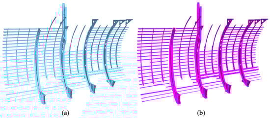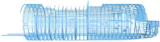 The paths of each branch in the wiring harness are designed to avoid interference with obstacles while meeting the requirements of the wiring process, closely following the structural framework of the aircraft body, resulting in an overall wiring solution with optimal process cost. Geometric modeling and assembly are performed based on third-order NURBS curves, and the layout result is shown in Figure 24.