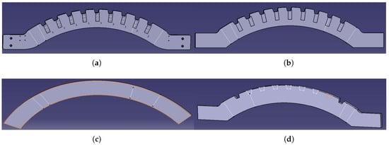 Specific part handling effect. (a) Original effect; (b) The effect after removing the hole; (c) The effect after removing the grooves; (d) Maximum simplification without deformation.