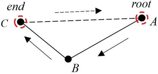 Figure 3 illustrates a schematic diagram of a local closed loop formed by three cables, , , and . and split at node , and interfere at node , and merges with at node . At the individual cable unit scale, , , and each represent the lowest-cost path, but at the scale of the entire cable bundle, the three cables form three branch points with closed loops formed by the branch segments through these points.