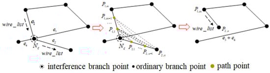Currently, there are relatively few studies on the automatic layout of multi-branch wire harnesses. The problem of automatic layout for multi-branch cable harnesses falls within the category of non-deterministic polynomial-hard (NP-hard) optimization problems, which requires finding an optimal layout solution that simultaneously optimizes both the cable routing path and the branching structure objectives. Research’s main focus has been improving non-deterministic search algorithms, such as genetic algorithms, ant colony algorithms, particle swarm algorithms, etc. Liu et al. [21] treated the problem of the layout of branch pipelines with multiple endpoints as the Euclidean Steiner minimal tree problem with obstacles (ESMTO), improved the particle swarm algorithm to optimize the topology of the branch pipelines, extended it to the surface wiring situation using the geodesics method, and demonstrated the layout of non-linear pipelines on the surface of an aircraft engine. Zhang et al. [22] proposed a multi-branch cable layout method based on satisfiability theory and particle swarm optimization, using a fixed-length array for particle encoding to store the number and coordinate information of branch points and incorporating a local perturbation factor to avoid the population becoming trapped in local optima.