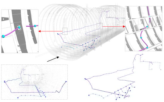 In order to verify the effectiveness of the A*–ant colony cable layout planning algorithm described in this paper, a comparative test is carried out using the A* algorithm [36] and ant colony algorithm [37]. Figure 28 shows the schematic result of cable routing using the A* algorithm optimized using process constraints, while Figure 29 shows the schematic result of cable routing using the ant colony algorithm.