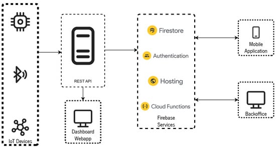 Several tools and services from Firebase were used to develop these components. Firebase is a mobile and web development platform by Google that provides app developers with easy-to-use and scalable back-end tools and services. The tools and services used in this project include Cloud Functions, Cloud Firestore, Firebase Hosting, and Firebase Authentication. Cloud Firestore is a cloud-hosted NoSQL database that allows developers to store and sync data in real time across multiple clients and platforms. It was used to store the geofences created by administrators and external applications. Cloud Functions allow developers to run code responding to events triggered by Firebase features and HTTP requests. They were used to develop the RESTful web services that will enable external applications to interact with the platform. Firebase Hosting is a web hosting service that allows developers to deploy web apps and static content to a global content delivery network. It was used to host a back-office web application. Finally, Firebase Authentication was used in the back office, providing an easy-to-use and secure authentication system [].
