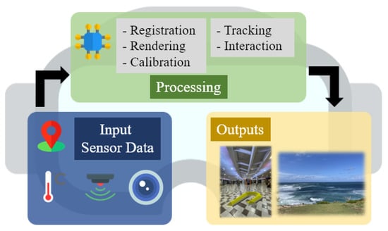 The implementation of real-time big data processing is necessary to ensure user immersion and prevent motion sickness in AR technology. Furthermore, the output of information with a higher pixel density (bit rate) than typical photographs and videos is essential. However, traditional cloud computing technology is burdened by high latency, and stand-alone technology demands high performance from end devices. Edge computing technology addresses this challenge by installing edge nodes at the network’s bottom, enabling efficient communication and performance in AR environments [3,4].
