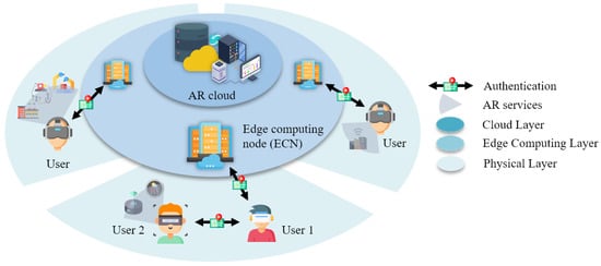 The proposed system model consists of the AR cloud, edge computing nodes (ECNs), and AR users. Figure 2 presents the proposed system model and details as follows: