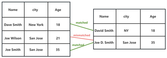 - Mudgal, S.; Li, H.; Rekatsinas, T.; Doan, A.; Park, Y.; Krishnan, G.; Deep, R.; Arcaute, E.; Raghavendra, V. Deep Learning for Entity Matching: A Design Space Exploration. In Proceedings of the International Conference on Management of Data, Houston, TX, USA, 10–15 June 2018. [Google Scholar]
