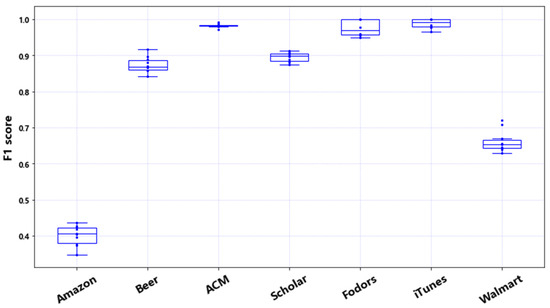 In the experiments, we also found that the proposed method has poor performance on Amazon-Google. Amazon-Google records software-related data, which has three attributes: “title”, “manufacturer” and “price”. Among these attributes, the missing rate of “manufacturing” in one data source is nearly 90%, and the “price” has no obvious matching law. Therefore, most of classifiers can only be constructed by the “title”. In this case, only a single attribute is used to judge whether the record pair is matched or not, so it is difficult to obtain good results by the method of string similarity. The proposed method only considers the structural similarity of the attribute, but for Amazon-Google, we need to analyze the semantic similarity to obtain more accurate prediction results. Therefore, the F1 score of Magellan and the proposed method are lower than DL-based methods.