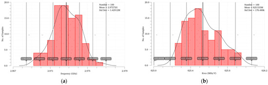 Figure 8, after design optimization of both the MOSFET and the varactor dimensions, as well as the biasing voltage, the VCO gain is equalized across the total