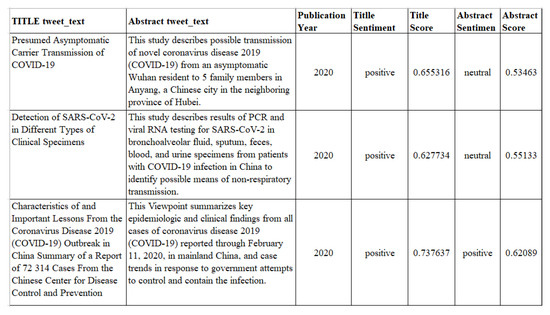 Using Azure Machine Learning-Sentiment analysis in Excel, we calculated for the “Abstract.csv” document, the fields “Sentiment” and “Score”. We used the same processing for the “Title.csv” document. The results are shown in Figure 10.