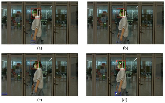 Figure 17 visualize the results of the proposed plenoptic MOT for each algorithm in NV1. As shown in the qualitative results, it verified that tracking of objects with occlusion fails in the case of using only 2D information in (a), whereas the proposed plenoptic MOT algorithm performed successful tracking even when occlusion occurs as shown in (b). When the fair-time scheduling technique is applied as shown in (c), there is an advantage in tracking speed, but when occlusion occurs, a certain target object (e.g., foot) is missed. Whereas, when the motion adaptive time scheduling was applied in (d), there was a benefit in overall tracking speed, and reliable tracking was performed even when occlusion occurred for all objects.