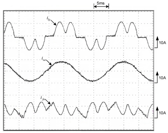 Figure 18 displays the waveforms of the diode current, the source current post-enhancement through the proposed strategy, and the bidirectional switch injection current, all representing the currents of phase-a.
