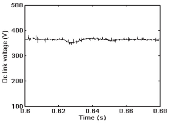 Figure 21 illustrates the DC link voltage waveform in response to a load disturbance, depicting a momentary transition in the converter’s output power from 50% to 100% of its rated value. The depicted minimal deviation in the DC link voltage output signal attests to the highly commendable response of the proposed control method in regulating the converter amidst sudden load variations.