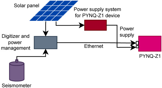A software/hardware co-design was performed and integrated into the PYNQ framework to achieve volcanic seismic event detection. The feature extraction task was developed on the processing system side, composed of an ARM Cortex-A9 dual-core, whereas the ML-based classifier was implemented in the FPGA part. Figure 6 shows the different components of the overall system.
