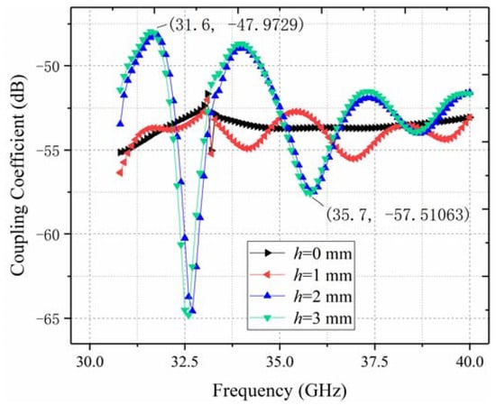 However, it is worth noting that as the insertion depth of the metal stub increased, the original resonance was amplified, as shown in Figure 6. When the insertion depth of the metal stub became larger, the maximum fluctuation of the coupling curve was about 10 dB except for the resonance point.