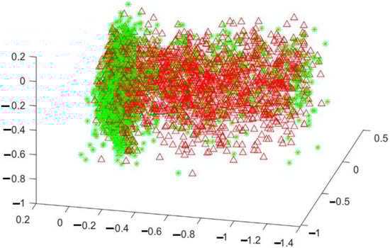 where SW is called the within-scatter-matrix while SB is the between-scatter-matrix. The solution of Equation (36) gives the eigenvalues which correspond to each of the above eigenvectors . From this solution we will employ the most important directions corresponding to the largest eigenvalues. Accordingly, the sum of the three largest eigenvalues over the sum of all eigenvalues gives the quality of cluster separability in the reduced 3D feature space. The largest eigenvalues obtained are those given in Table 4.