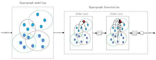 Graph convolutional networks (GCN) and hypergraph neural networks are both branches of graph neural networks, with GCN providing the foundation for the development of hypergraph neural networks [23]. In graph theory and mathematics, a hypergraph is a generalized graph data structure used to represent relationships between sets. Unlike traditional graphs where edges connect two nodes, the edges (commonly referred to as hyperedges) of a hypergraph can connect multiple nodes. This flexibility allows hypergraphs to represent many-to-many relationships more effectively, making them suitable for modeling complex relationship networks. Hypergraph neural networks are a type of deep learning model designed to handle complex hypergraph data structures, not just traditional graph data [24]. Hypergraph neural networks extend the scope of traditional graph neural networks to accommodate the characteristics of hypergraph data.