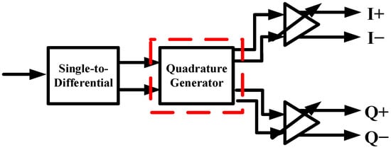 With the development of communication technology, transceivers with quadrature mixers are being used more and more widely. As all such transceivers need to provide orthogonal local carriers, the design of the in-phase and quadrature-phase signal (I/Q) generator is very important in the transceiver. Figure 1 illustrates the fundamental schematic for the local oscillator (LO). The single-phase signal is initially directed to a single-to-differential circuit to obtain differential signals. Subsequently, a quadrature generator is employed to derive I/Q signals, followed by signal amplification through a buffer.