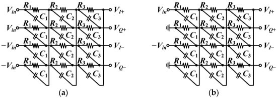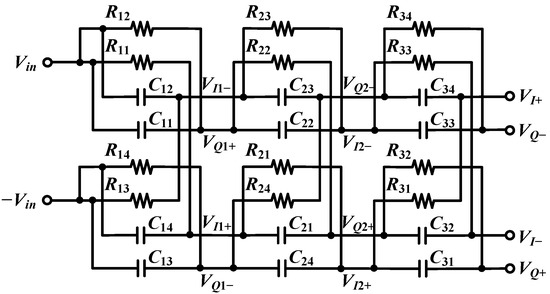 Another discovery is that, according to Equations (17)–(22), the individual values of the resistance and capacitance of each stage play a significant role in the voltage loss. Therefore, although the individual values of resistance and capacitance have no influence on the I/Q mismatch, they should still be well designed to minimize the total voltage loss, according to the premise that their production remains unchanged.
