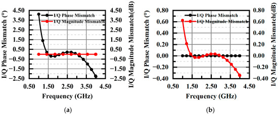 As discussed in Section 2.3, to achieve a low I/Q mismatch for the ultra-wideband application, more than one PPF working in different frequency bands should be used, and the switching frequency should be the arithmetic square root of the “high frequency points at higher frequency band” and “slow frequency points at lower frequency band”.