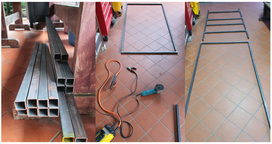 The main frame which the solar panel sits on is made from a 1-inch mild steel hollow section. Dimensions were based on the 3D CAD model seen in Figure 4. The hollow sections which came in 6 m lengths were first cut to the required lengths, as shown in Figure 7 below.
