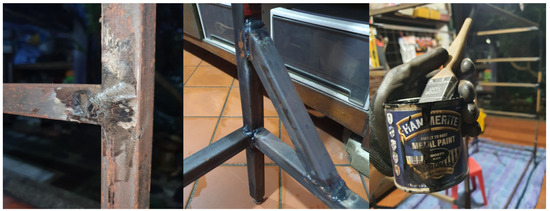 As the material used was mild steel, rust was prone to form. This can be seen in Figure 8. As such, the frame was sanded and then treated with several layers of metal paint, which prevents the formation of rust and protects the metal from the elements.