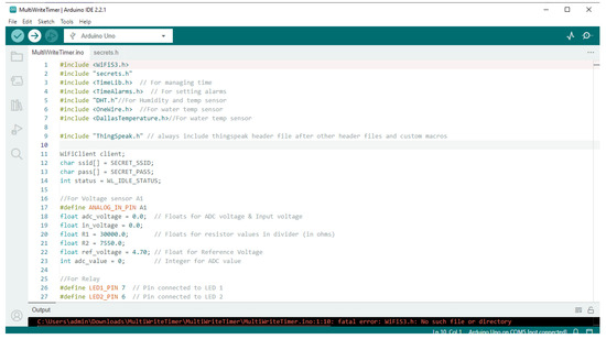 The screen capture above shows part of the working code for the system used in the prototype. As there were several controls and sensors used, there were many iterations and rounds of debugging. In addition, this code allowed the board to be connected to the internet for data transfer and collection. The data collected were sent to ThingSpeak, as shown below in Figure 20.