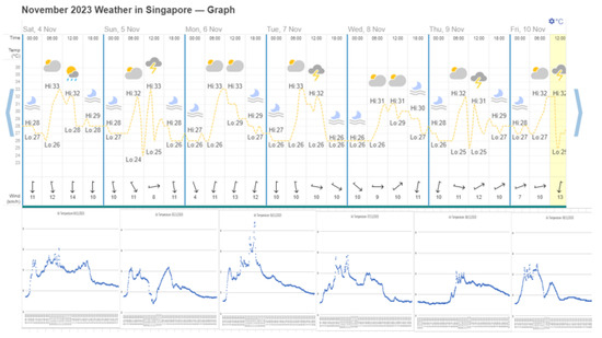- Timeanddate. Past Weather in Singapore—Yesterday or Further Back. Available online: https://www.timeanddate.com/weather/singapore/singapore/historic (accessed on 27 November 2023).