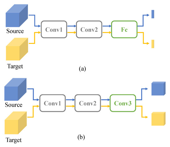 The AdvGRL in this paper is constructed by a domain discriminator to classify whether the input sample belongs to source domain or target domain. To be specific, it produces the domain prediction during forward propagation and the gradients of AdvGRL are reversed to the base detection network in the progress of back propagation. The reversal gradients confuse the domain discriminator and thus domain-invariant features are obtained by the base detection network. Most methods related to gradient reverse [14,27,34] adopt stacked convolutions as fusion layers to generate pixel-level domain features, as shown in Figure 2b. Those methods are always combined with instance-level discriminators in two-stage detection frameworks such as Faster-RCNN to achieve the domain adaption. For one-stage detector, we proposed a novel global-level discriminator with both convolution and Full Connection (FC) layers, as presented in Figure 2a. Compared to full conventional structures, the compact domain descriptor generated from FC reflects the global style. Comparative experiments conducted in Section 5 show the effect of our proposed structure.